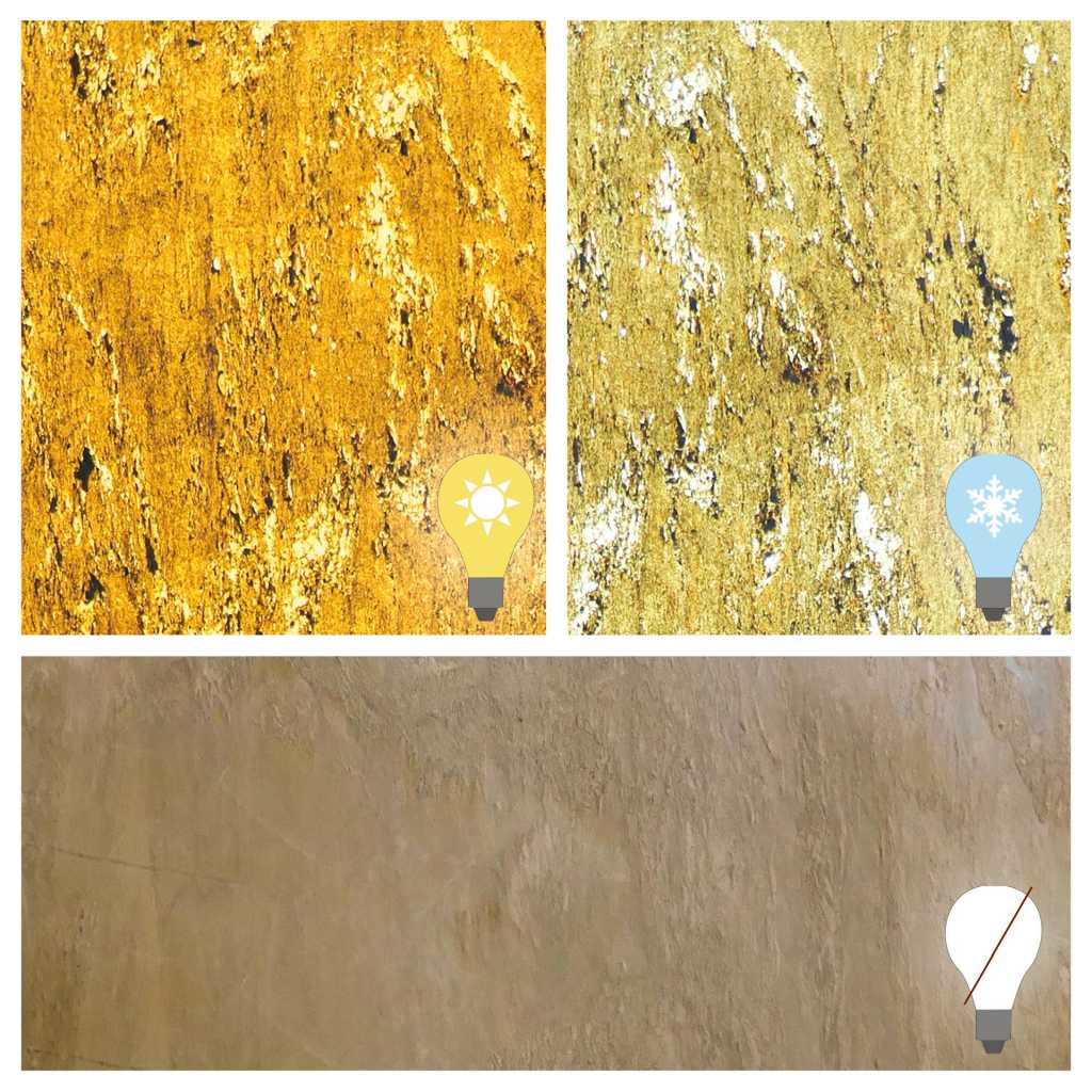 Caldera Gold Luma ist das absolute Designelement, die lichtdurchlässigen Steine verwandelnden jeden Raum in ein einzigartiges Erlebnis der Sinne. Caldera Gold Luma hat dieselben Eigenschaften wie das Classic Material, bis auf die Lichtdurchlässigkeit. Wird das Leuchtmittel hinter dem Caldera Gold Luma ausgeschaltet, wirkt es wie gewöhnlicher Schiefer, wird die Lichtquelle eingeschaltet entstehen einzigartige Musterungen.