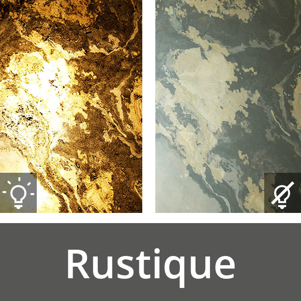 Rustique Luma ist das absolute Designelement, die lichtdurchlässigen Steine verwandelnden jeden Raum in ein einzigartiges Erlebnis der Sinne. Rustique Luma hat dieselben Eigenschaften wie das Classic Material, bis auf die Lichtdurchlässigkeit. Wird das Leuchtmittel hinter dem Rustique Luma ausgeschaltet, wirkt es wie gewöhnlicher Schiefer, wird die Lichtquelle eingeschaltet entstehen einzigartige Musterungen.
