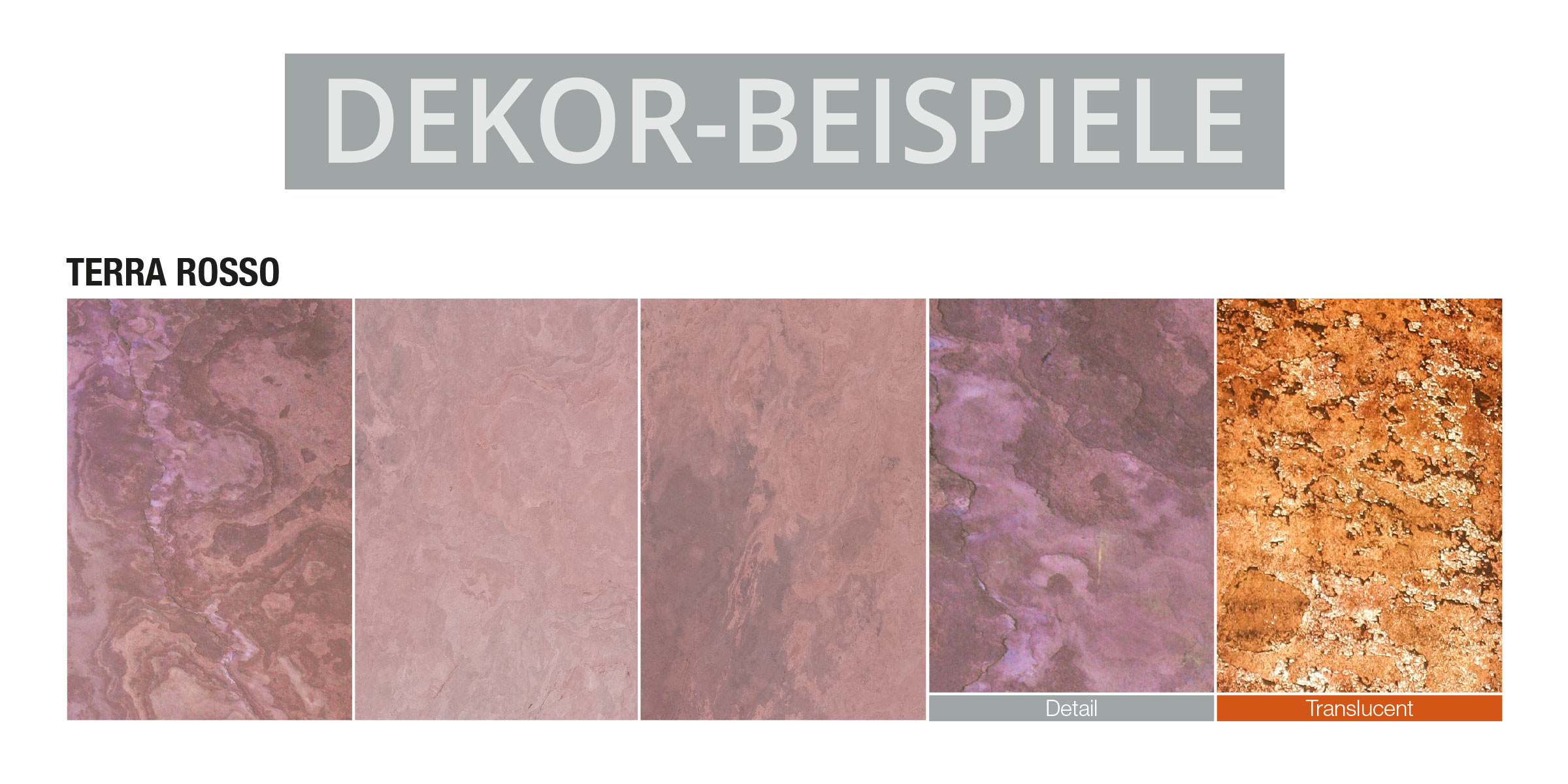 Terra Rosso ist ein Buntschieferdekor mit einer echten Steinoberfläche Der Buntschiefer zeichnet sich durch matte Farben, aber oft sehr stark durchwachsene Verläufe mit blumigen Mustern aus.