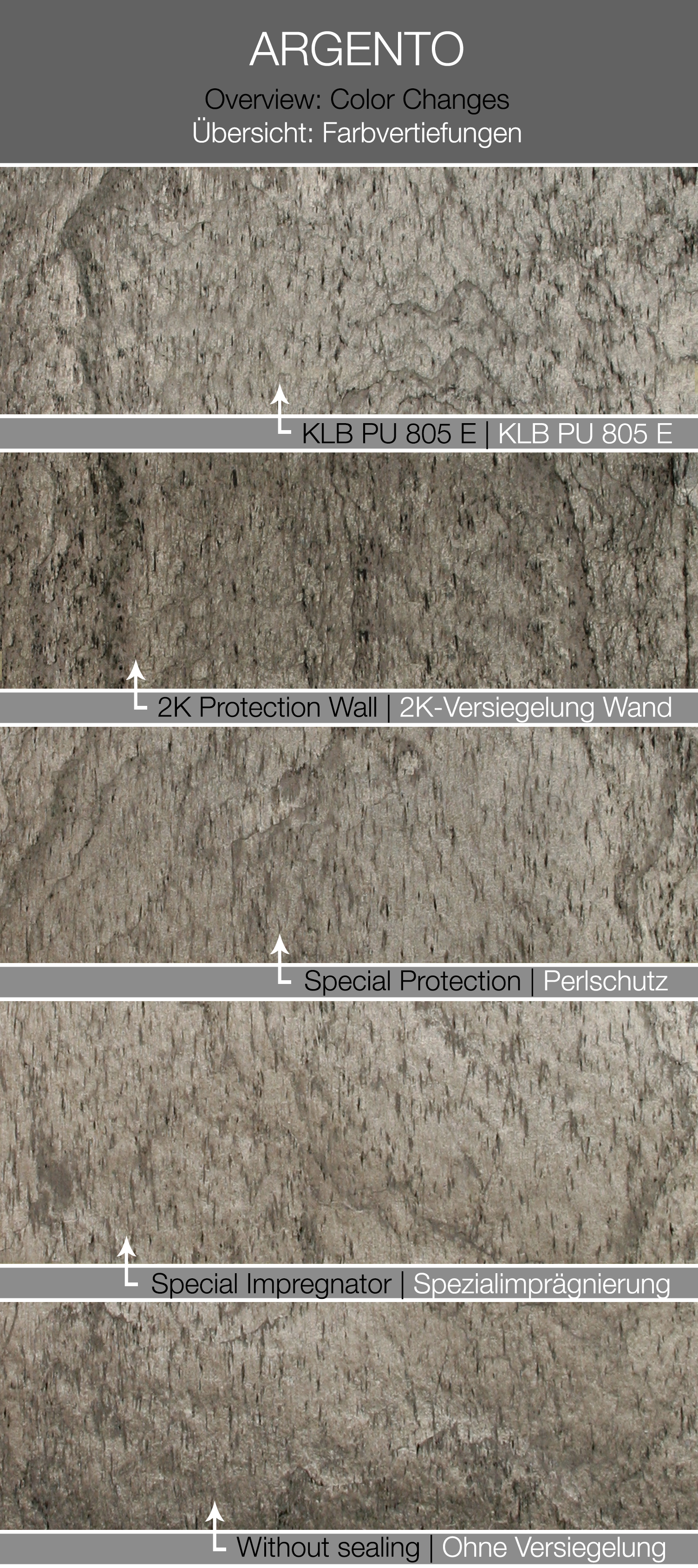 Argento ist ein Glimmerschieferdekor mit einer echten Steinoberfläche. Der besondere Glimmereffekt entsteht durch einen erhöhten Anteil an Feldspat. Insgesamt ist die Oberfläche härter und weist eine stärkere Struktur auf, somit eignet sich dieses Material besonders für Wände als auch für Fußböden. Meistens bleibt der Glimmerschiefer sehr farbstabil in der Maserung der Oberfläche.