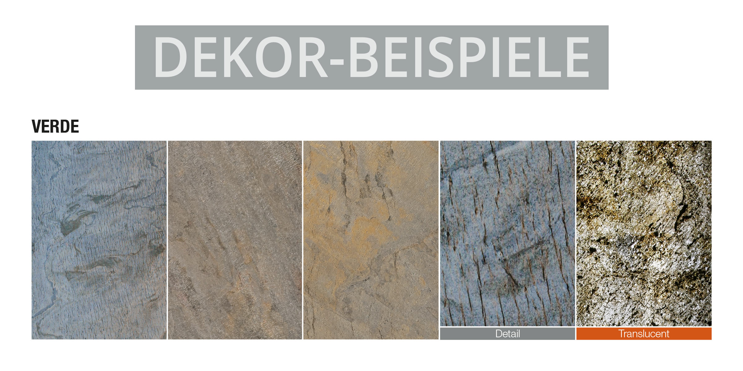 Verde ist ein Glimmerschieferdekor mit einer echten Steinoberfläche. Der besondere Glimmereffekt entsteht durch einen erhöhten Anteil an Feldspat. Insgesamt ist die Oberfläche härter und weist eine stärkere Struktur auf, somit eignet sich dieses Material besonders für Wände als auch für Fußböden. Meistens bleibt der Glimmerschiefer sehr farbstabil in der Maserung der Oberfläche.
