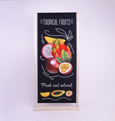 - ein Aufsteller für Textildruck mit Saum
