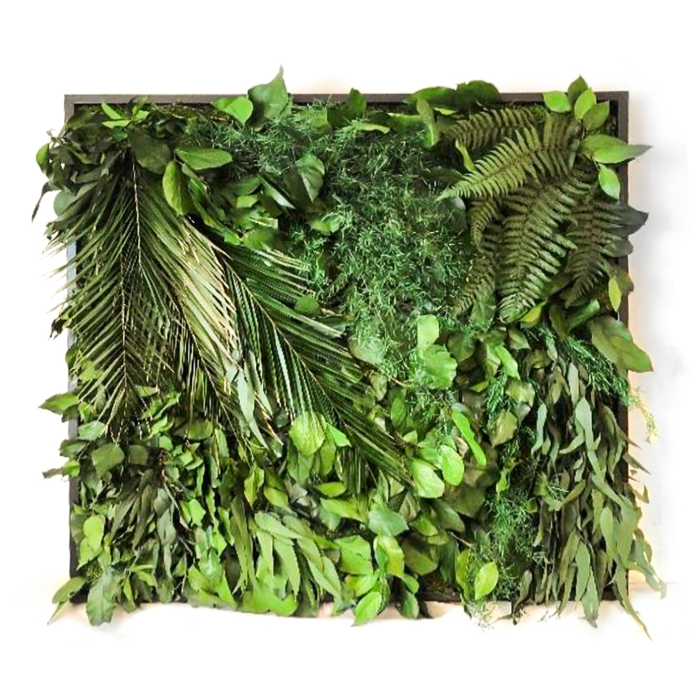 Unsere Dschungelwände werden aus echten, konservierten Pflanzen gefertigt. Die Pflanzen werden in einem speziellen und natürlichen Verfahren mit Salzen, Glycerin und Lebensmittelfarbstoff konserviert. Dadurch werden sie pflegefrei und haltbar gemacht. Die Pflanzen benötigen weder Wasser, noch Licht. Einzig und allein müssen die Rahmenbedingungen gesunder Raumluft eingehalten werden. Dem entspricht eine relative Luftfeuchtigkeit zwischen 40 und 60 %. Direkte Sonneneinstrahlung und zu hohe beziehungsweise zu niedrige Luftfeuchtigkeit beeinflussen die Haltbarkeit. Die Moosoberfläche ist antistatisch und zieht daher keinen Staub an.