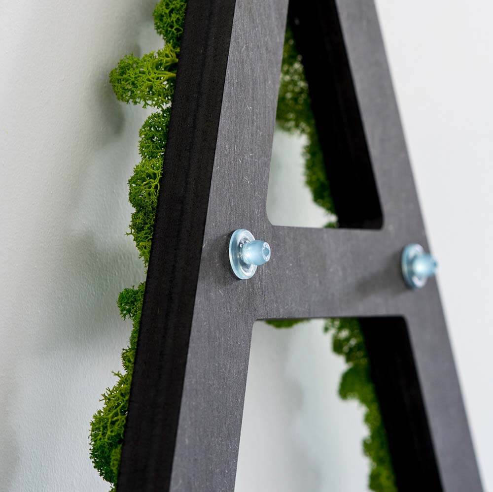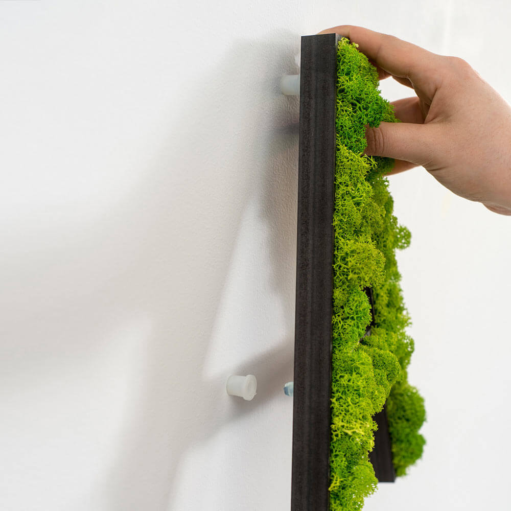 Aufhängung: durch die Aufhängung des Moos-Schildes mit Klebepunkten ist die Anbringung unkompliziert und auf jedem Untergrund schnell erledigt.