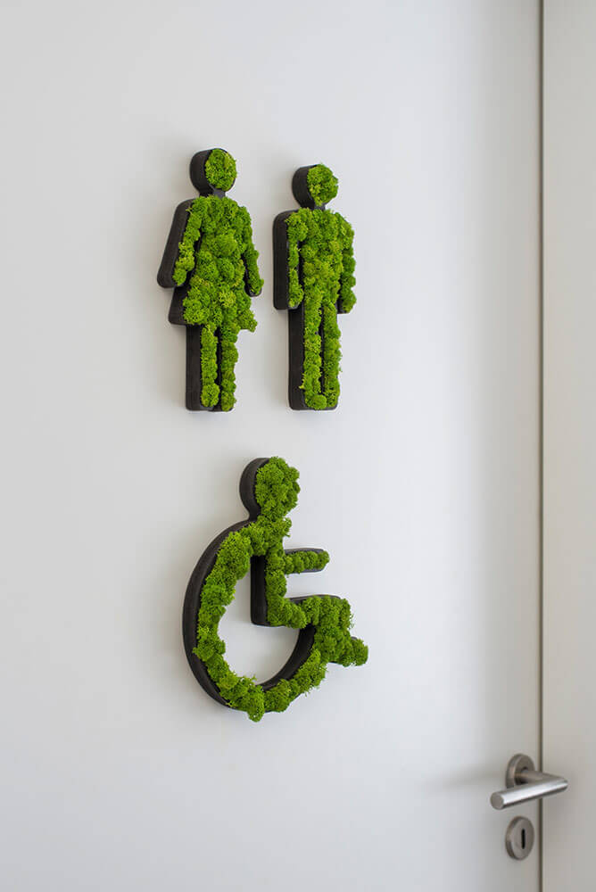 Aufhängung: durch die Aufhängung des Moos-Schildes mit Klebepunkten ist die Anbringung unkompliziert und auf jedem Untergrund schnell erledigt.