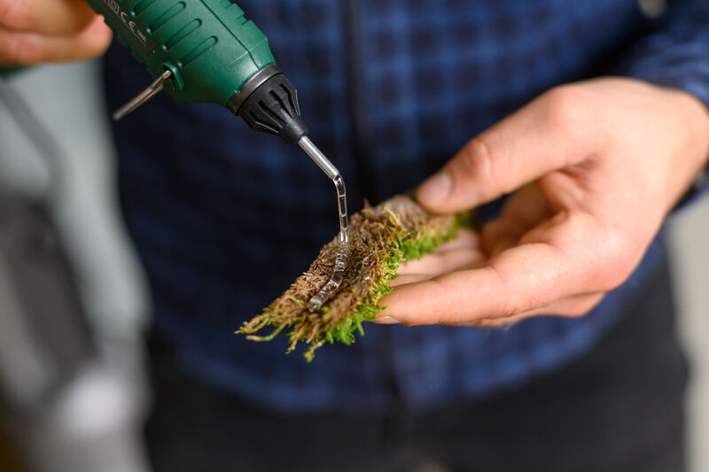 - Die Kantenbegrünung wird mithilfe von Heißkleber befestigt