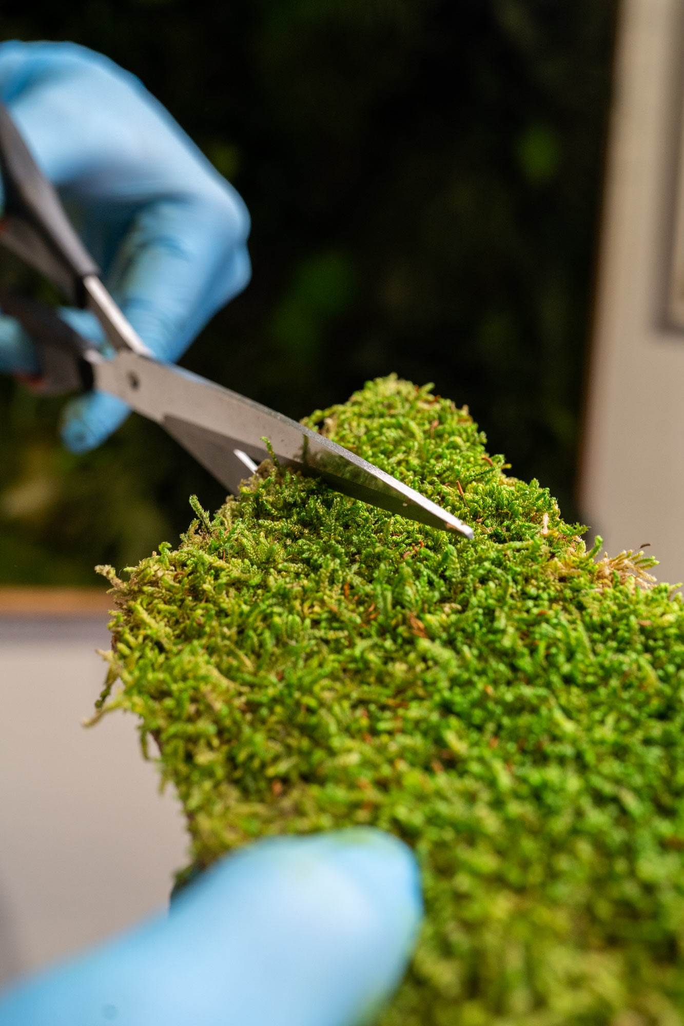 - Das Moos kann bei Berührung seine Farbe abgeben. Verwenden Sie zur Montage Handschuhe oder waschen Sie anschließend sofort Ihre Hände, um Verschmutzung anderer Gegenstände zu vermeiden.